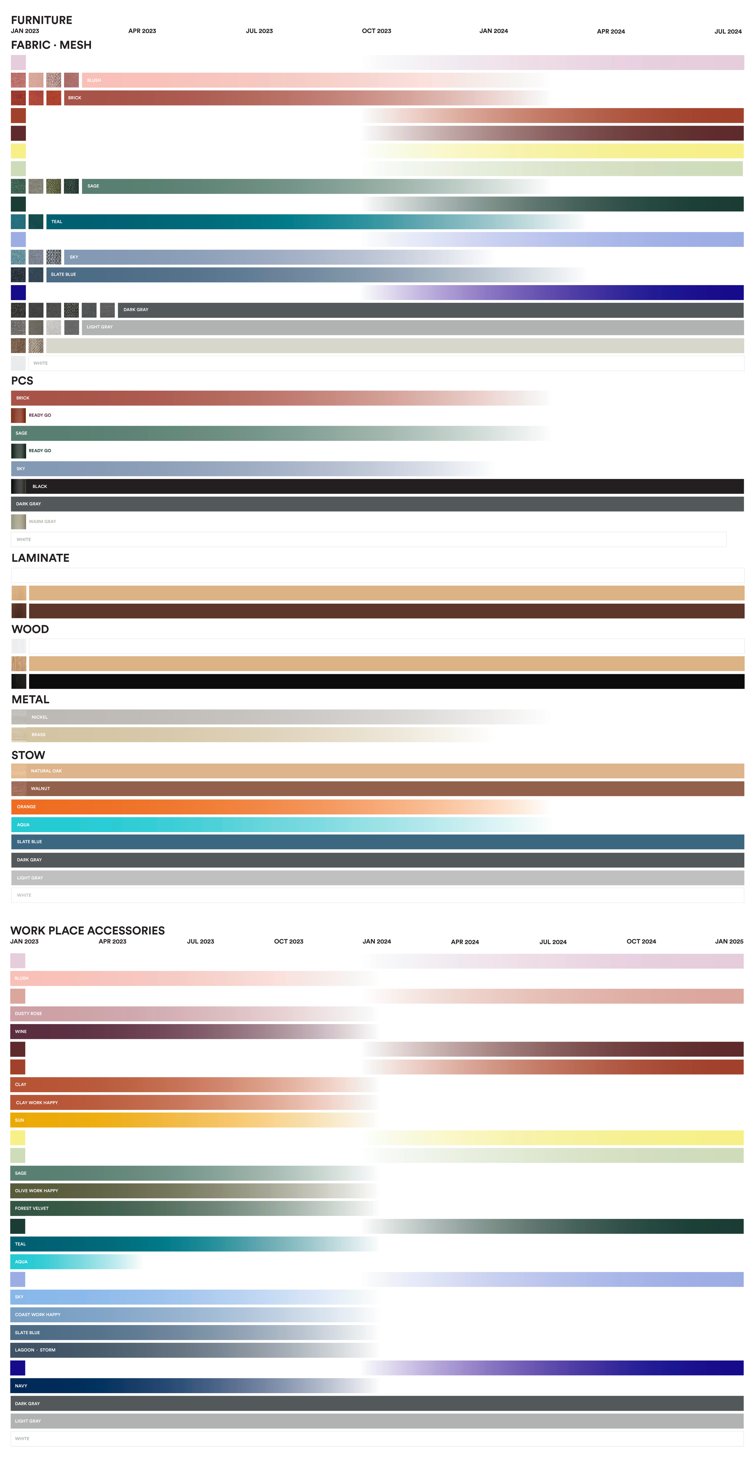 Color Strategy Implemented a comprehensive approach to the refresh of Color, Material, and Finish across all product categories, utilizing seasonal market trends and working within brand guidelines to strategically integrate design choices.